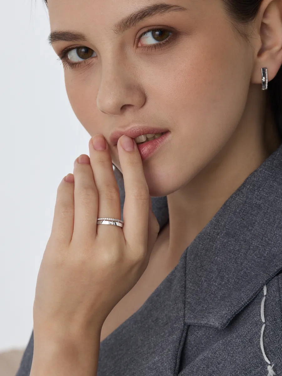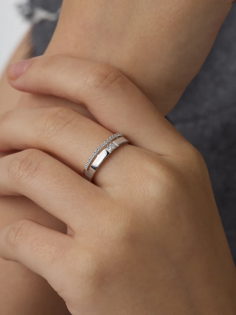 Kadın Sıralı Taş Detay Tasarım Model Taşlı Gümüş Yüzük