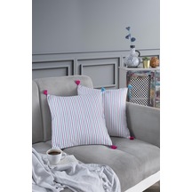 Maisonart Pompoms 2'li Dekoratif Kırlent Kılıfı Yastık Kılıfı %100 Pamuklu 44x44 Cm Kırmızı
