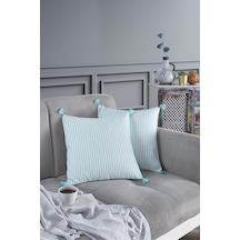 Maisonart Pompoms 2'li Dekoratif Kırlent Kılıfı Yastık Kılıfı %100 Pamuklu 44x44 Cm Mint