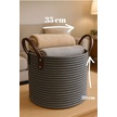 Maisoné Deri Saplı Hasır Görünümlü Jüt Sepet Battaniye Sepeti Oyuncak Sepeti Antrasit