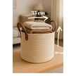 Maisoné Deri Saplı Hasır Görünümlü Jüt Sepet Battaniye Sepeti Oyuncak Sepeti Krem