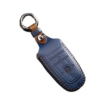 Maiyame Ford Fusion, Explorer, F-150 Raptor Ve Diğer Modeller İçin 5 Tuşlu Akıllı Anahtar Koruması - Crazy Horse Deri, 360 Tam Kaplama, Mavi