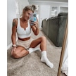 Maiyame Siyah Düz Dikey Çizgili Kollu Puf Çoraplar, Orta Boy Bacak Çorapları - Tek Adet 95% Poliester, 5% Spandeks Siyah