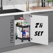 Maja 2 Adet 2 Katlı Siyah Tekerlekli Düzenleyici Mutfak Rafı Bany Siyah