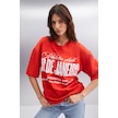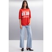 Malıka Kadın %100 Organik Pamuklu Şehir Tema Baskılı Oversize Bisiklet Yaka Kırmızı T-shirt