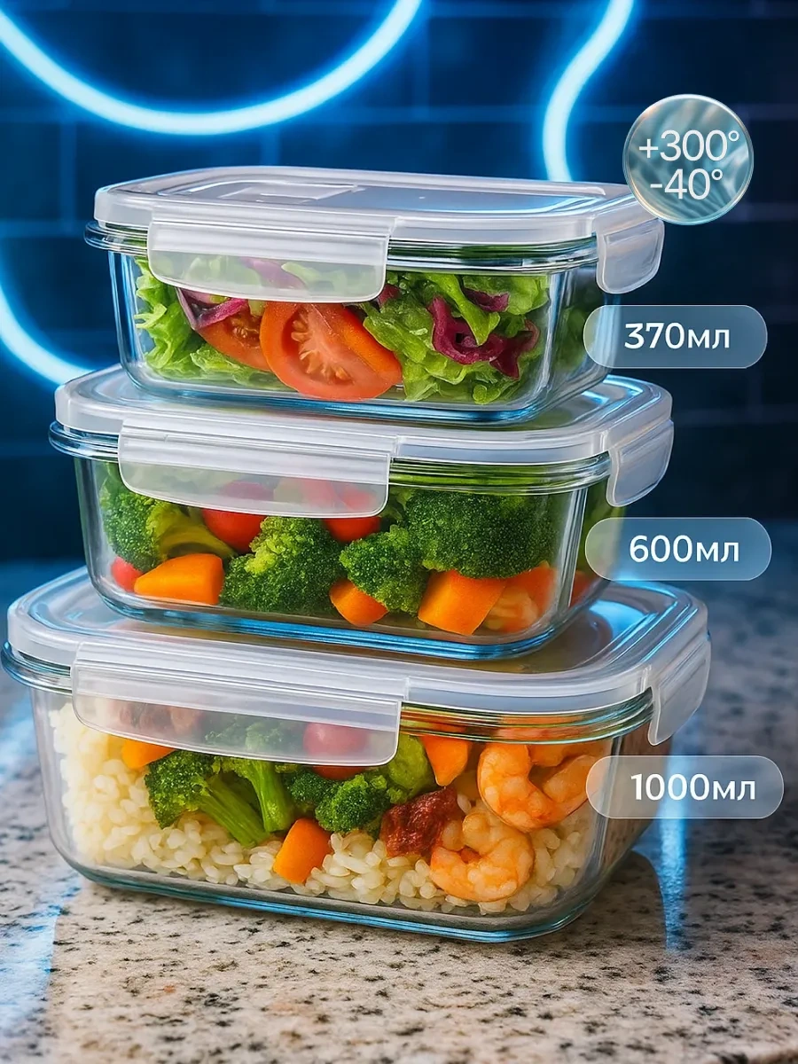 Mallony Cam Gıda Kabı Kapaklı Sızdırmaz Set 288009556 Açık Mavi