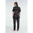 Man9895-1002 Anıl Ev Giyim Anıl 9895 Yarım Kollu V Yaka Kadın Viskon Çiçek Desenli Yazlık Dokuma Dan Siyah