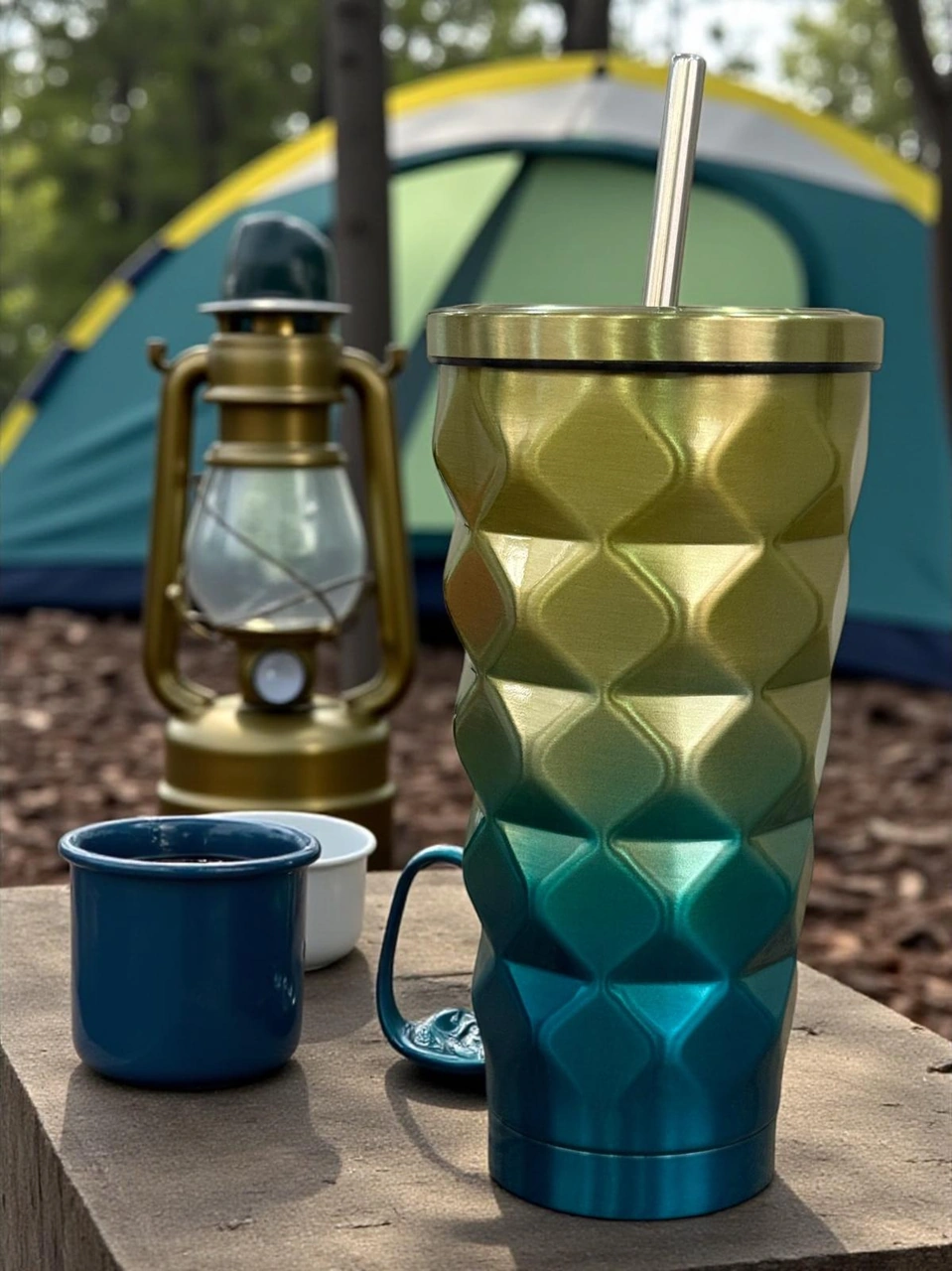Mango Renkli Geometrik Pipetli Termos 500 Ml-soğuk Ve Sıcak İçecekler İçin Mavi - Sarı