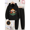 Mantar Baskılı Erkek - Kız Rahat Eşofman Takımı Siyah
