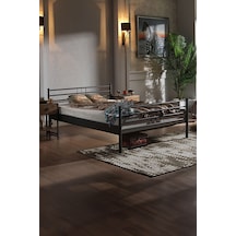 Manyas Çift Kişilik Ferforje Metal Karyola-siyah Ahşap Latalı