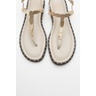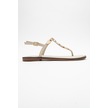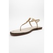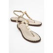 Marea Bej Hakiki Deri Parmak Arası Gold Tokalı Kadın Sandalet Bej