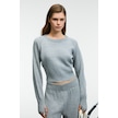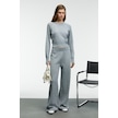 MARIPOSA Kadın Yuvarlak Yaka Çizgi Desenli Crop Geniş Paça Triko Grimelanj Alt-Üst Takım