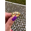 Marka Model Zirkon Çiçek Desenli Gold Yüzük - Ayarlanabilir Gold