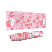 Masa İçin Kawaii Oyuncu Mouse Pad'i, Büyük Kedi Çilekli Süt Mouse Pad'i, Pembe Mouse Pad Xl, Sevimli Anime Mouse Pad'i