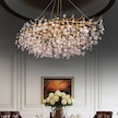 Masal Sıralı Gold Yemek Masası Üstü, Kristal Taşlı Modern, Oturma Odası, Salon Avize Altın