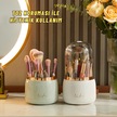 Masaüstü Makyaj Fırçası Ve Kozmetik Düzenleme Kutusu Organizer Bölmeli Dönebilen Bej