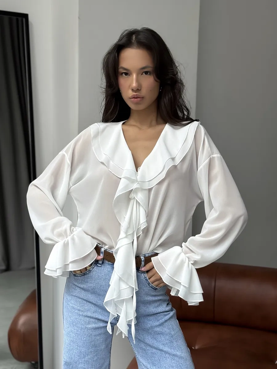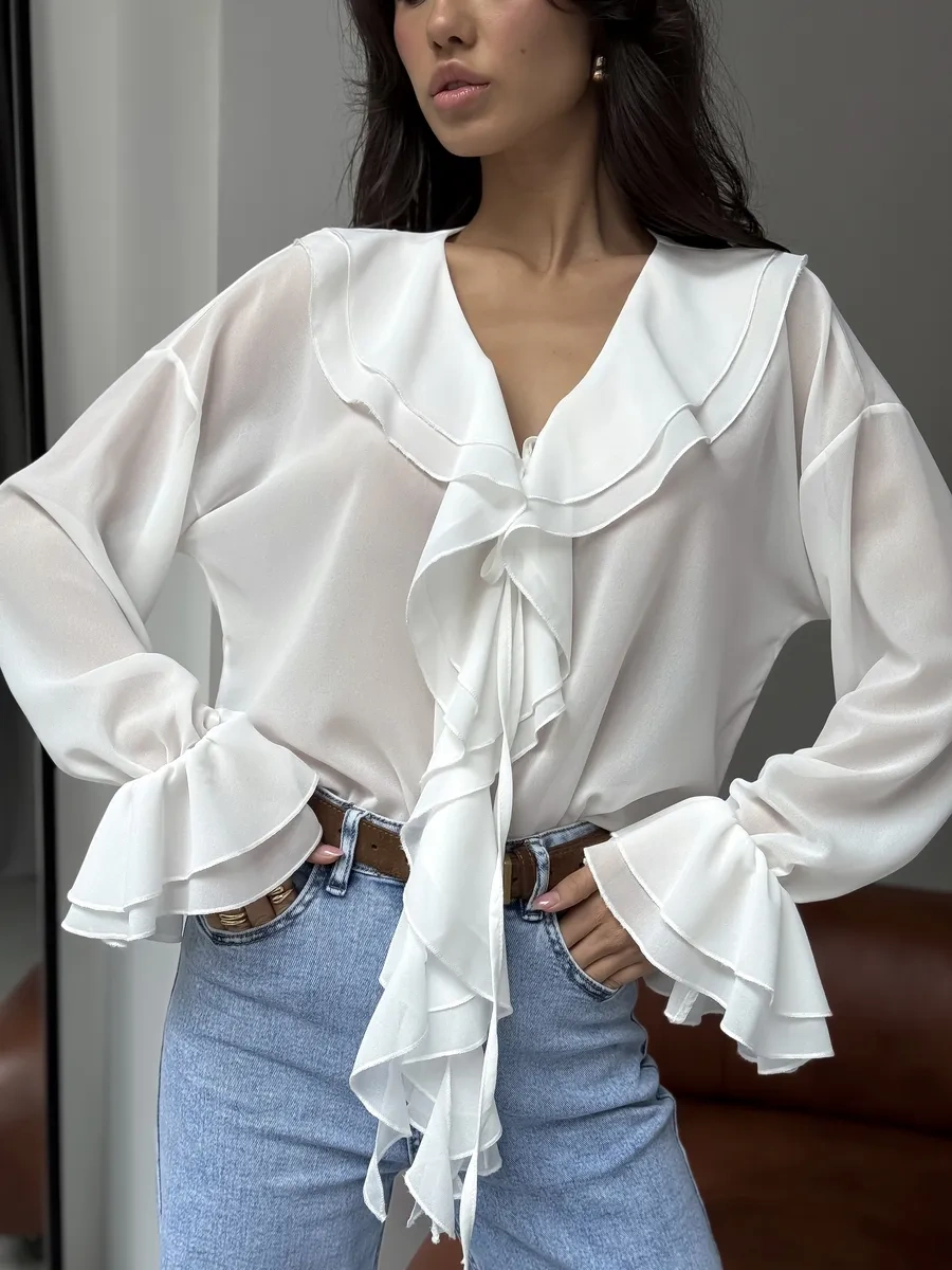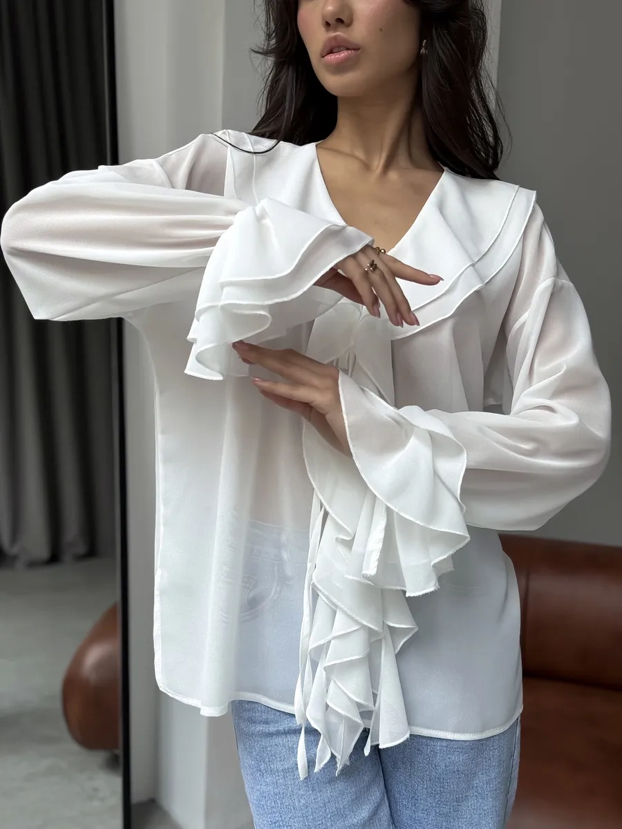 Masya Beyaz Fırfırlı Şık Bluz 449250351 Beyaz