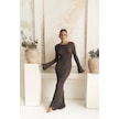 Matias Sırt Dekolteli Boz Kahve Triko Uzun Elbise Boz Kahve