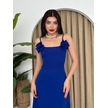 Eteği Volanlı Uzun Elbise Kırık Beyaz