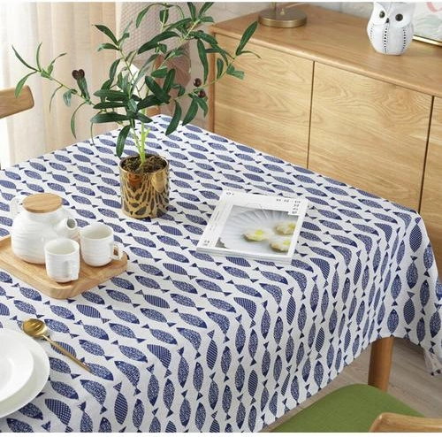 Mavi Balık Desen Kalınlaşmış Keten Pamuk Masa Örtüsü Moda Kapak Kahve Yemeği Masa Örtüsü Düğün Ziyafet İçin Masa Örtüleri 4 Adet B