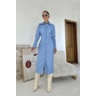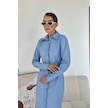 Mavi Boydan Düğmeli Deri Elbise Mavi
