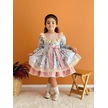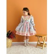 Mavi Çiçekli Önü Fiyonklu Vintage Elbise, Özel Dikim Çocuk Elbisesi, Doğum Günü Elbisesi,0-12 Yaşa Uygun Mavi