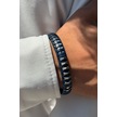 Mavi Çizgili El İşçiliği İle Üretilmiş Hakiki Deri Erkek Bileklik Gümüş - Mavi