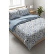 Mavi Geometrik Çizgi Çift Kişilik %100 Pamuk Nevresim Takımı MAVI