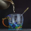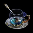 Mavi Gül Emaye Kristal Kupası Çiçek Çay Cam Yüksek Dereceli Cam Su Kupası Çiçek Kupa İle Handgrip Ile Mükemmel Hediye Düğün Kupalar Mavi Ahşap