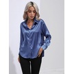 Mavi İlkbahar Ve Sonbahar Kadın Gömlek Saten Gömlek Mizaç Banliyö Uzun Kollu Üst Mavi
