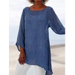 Mavi Kadın Pamuklu Ve Keten Düz Renk Günlük Gömlek Düzensiz Uzun Kollu Tişört Mavi