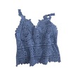Mavi Kadın Yaz Yelek Üstleri V Yaka Kolsuz Tığ Örgü Üstleri Düz Renk Hollow Dantel Sling Mavi