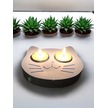 Mavi Kedi Şekilli Beton Mumluk - El Yapımı Dekoratif Çay Işığı Tealight Mumluk - Minimalist Kedi Tem Mavi