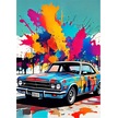 Mavi Klasik Araba Modern Ahşap Tablo 35cm X50cm