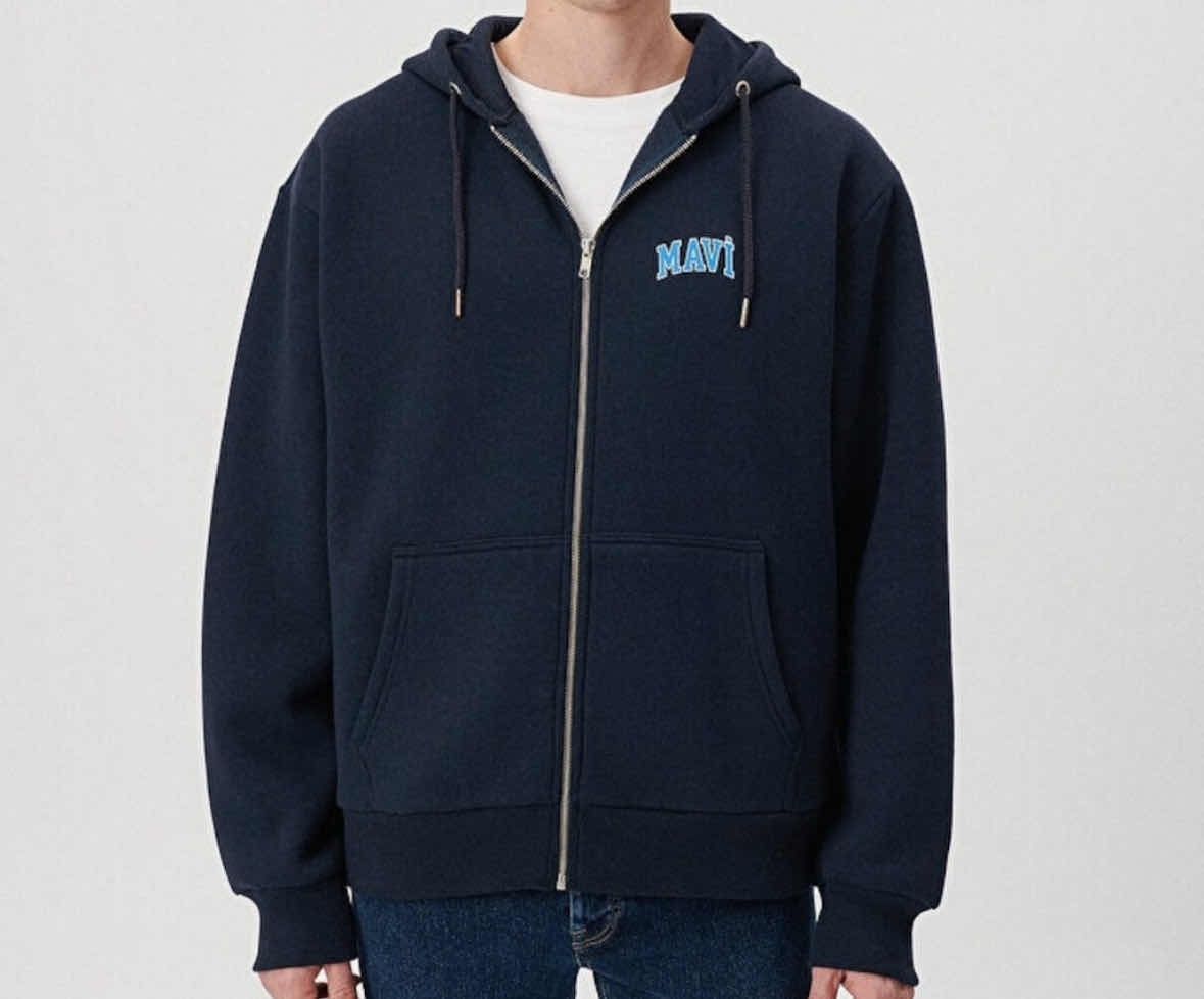 Mavi - Mavi Logo Baskılı Fermuarlı Lacivert Sweatshirt 0611715-70490 Lacivert