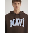 Mavi - Mavi Logo Baskılı Kapüşonlu Kahverengi Sweatshirt 067149-88067 Kahverengi