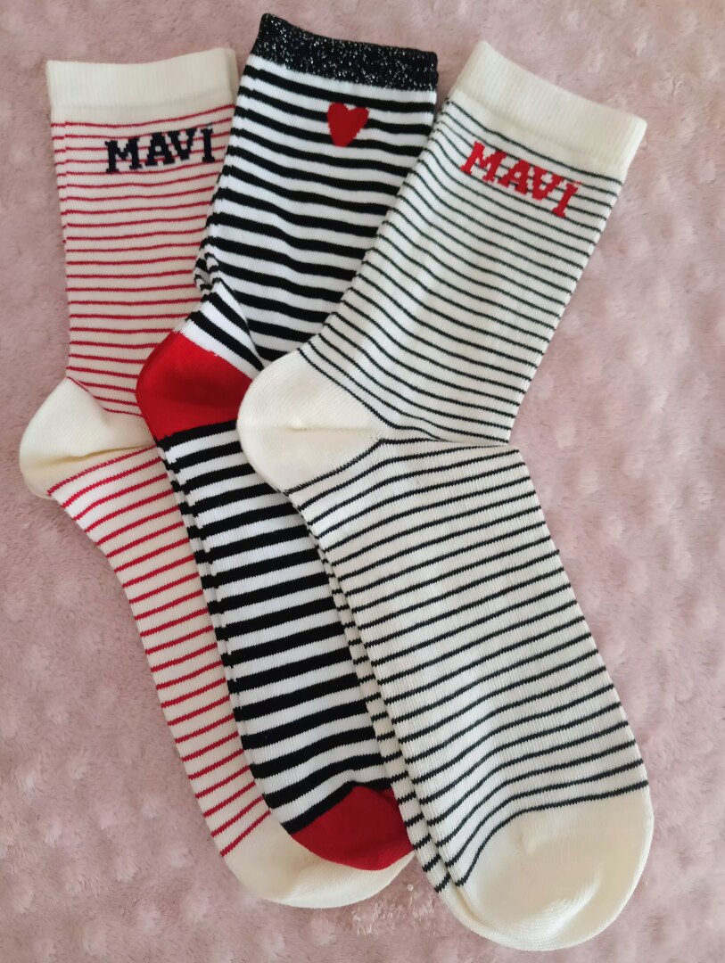 Mavi - Mavi Logo Detaylı Siyah Çizgili Soket Çorap 1912754-70057 Beyaz