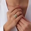 Fiyonk Kuyumculuk 14 Ayar Altın Sarı Geniş Baget Taşlı Yüzük 001