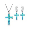 Mavi Moda İsa Haç Aksesuarları Kadınlar Için Set İmitasyon Mavi Ateş Opal Çapraz Kolye Kolye Küpe Kadın Düğün Takısı Mavi