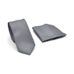 Mavi Nokta Desenli Gri Dokuma Kumaş Mendilli Slim Fit Kravat // Sdk-2510-4 Gri
