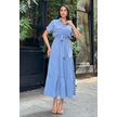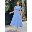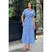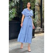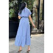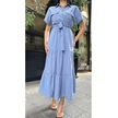Mavi Pliseli Kuşaklı Maxi Uzun Ceket Elbise Mavi