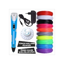 Mavi Renk 3d Kalem + 25 Renk Toplam 25 Metre Pla Filament + Şablon