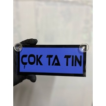 Mavi Renk Üzeri Siyah Renk Çok Ta Tın Yazılı Vantuzlu Cam Süsü