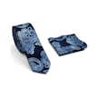 Mavi Şal Desenli Lacivert Dokuma Kumaş Mendilli Slim Fit Kravat // SDK-240113 Lacivert