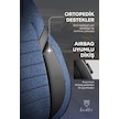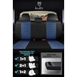 Mavi - Siyah Butti Lino Serisi Keten Kumaş Premium Oto Koltuk Kılıfı Ortopedik Destekli, Ön Arka Tam Set