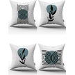 Mavi Siyah Dekoratif Soyut Yaprak Desenli Dijital Baskılı Kırlent Yastık Kılıfı Seti 4kmbs124