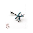 Mavi Taşlı Kurdele 316L Cerrahi Çelik Göbek Piercing P422 Mavi