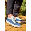 Mavi Triko Yüksek Taban Bağcıklı Günlük Erkek Ayakkabısı Mavi