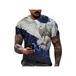 Mavi Yeni Yaz Erkek Moda T-shirt Kişilik Uçan Kartallar Baskılı Erkek T-shirt Üst Mavi