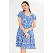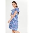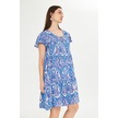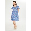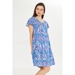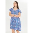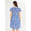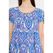 Mavi Yuvarlak Yakalı Kısa Mendil Kol Etnik Otantik Desenli Rahat Kesim A-line Kısa Elbise Mavi-beyaz